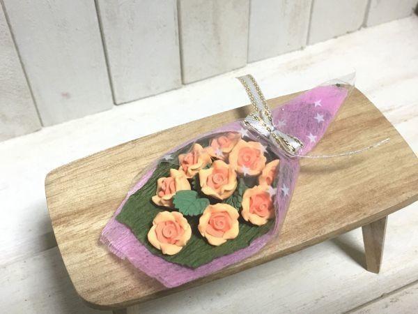 z199◆ドールへの贈り物◆ ミニチュア 花束 橙 薔薇 バラ 花ドールハウス